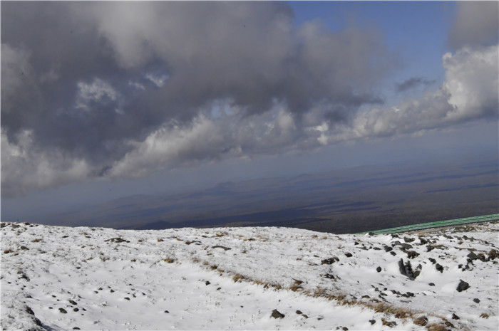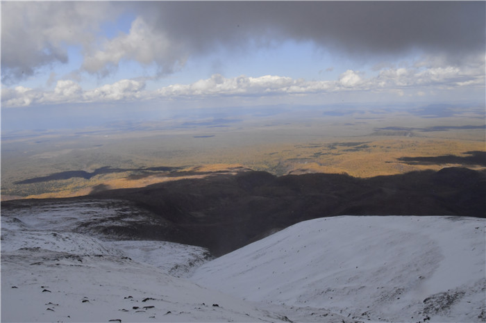 截至记者发稿时,雪还在下,在海拔2200米以上就能见到冰雪覆盖的长白山了。