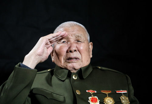 在吉林省通化市拍摄的志愿军老战士徐振明(10月21日摄)。