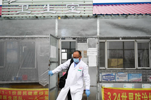 在吉林省舒兰市法特镇五里坡村,村医甘春峰走出卫生室去给村民做体检(10月11日摄)。新华社记者 颜麟蕴 摄
